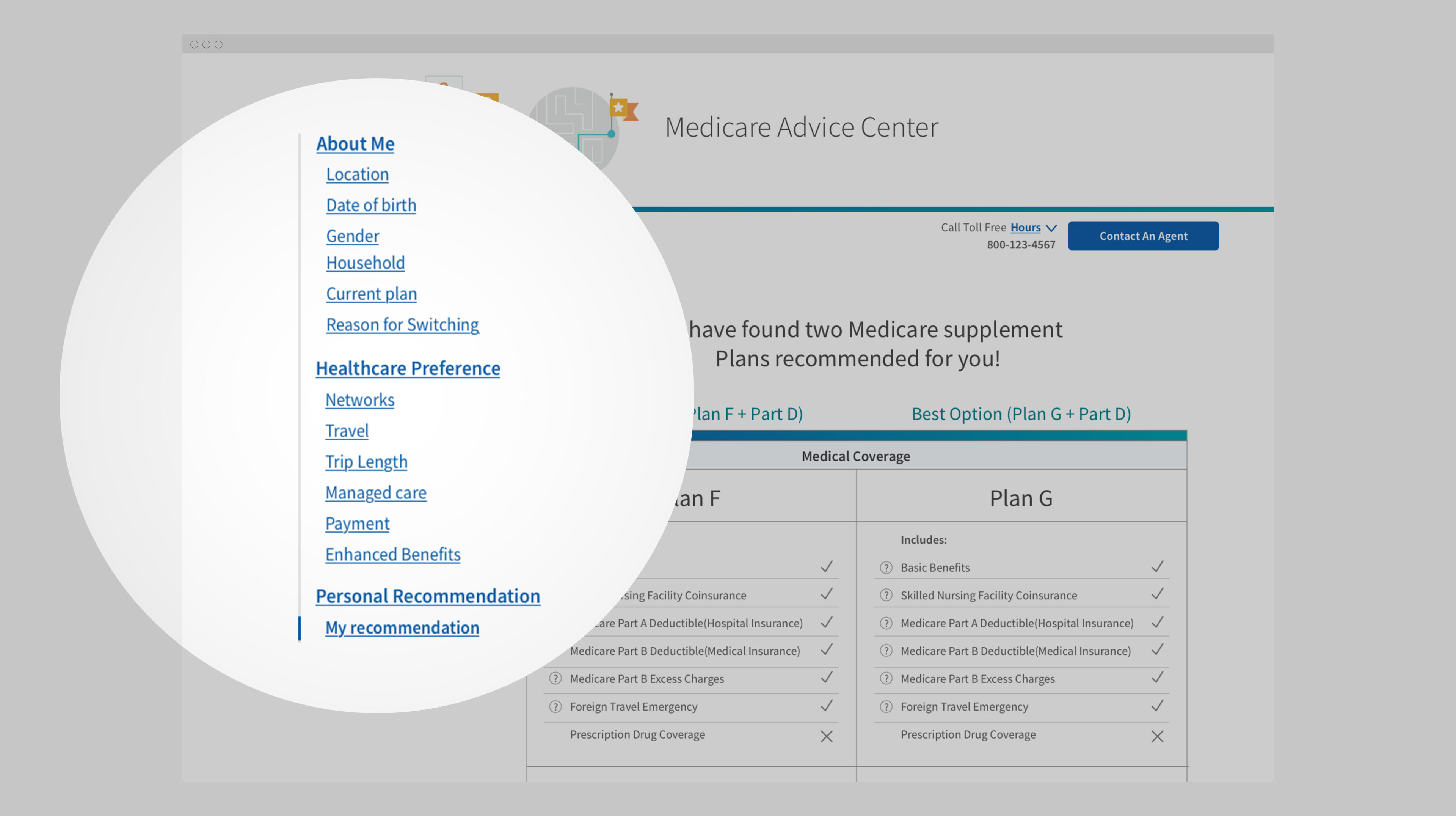 Designing a short, structured advice flow to help seniors identify the right Medicare options and connect with an advisor.